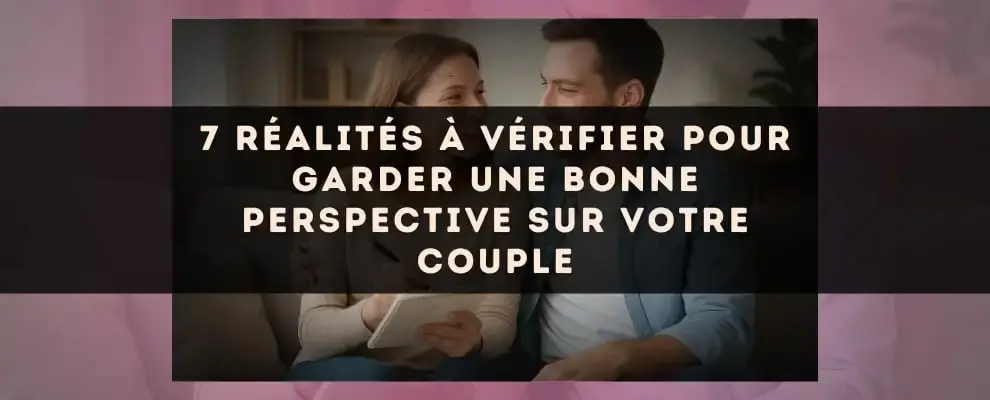 Garder une bonne perspective sur sa relation demande plus que de l'amour: c'est un art de l'observation et de la lucidité. Ici vous trouverez 7 réalités à vérifier pour évaluer la santé de votre couple, détecter les petits glissements et nourrir la confiance. Entre communication, attentes et autonomie émotionnelle, chaque réalité est une clé pratique pour transformer les doutes en actions concrètes. Ce guide vous offre des repères clairs pour retrouver du sens, apaiser les tensions et cultiver une relation durable.