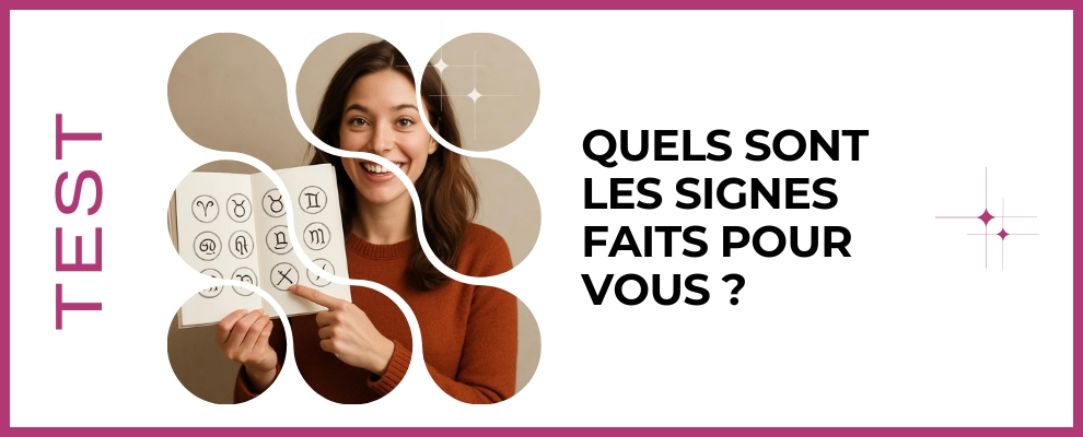 Dans ce test, vous allez explorer vos préférences profondes, identifier les signes qui correspondent à votre tempérament et découvrir des pistes pour reconnaître l'âme sœur au quotidien. Le but n'est pas de cataloguer ou d'enfermer, mais d'éclairer vos choix et de renforcer votre écoute intérieure. À la fin, vous saurez mieux sur quels critères vous appuyer pour trouver une relation épanouissante, et vous repartirez avec des conseils concrets pour repérer ces signes dans la vie réelle.