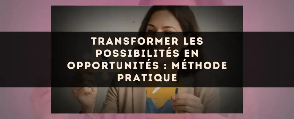 Je vous invite à considérer chaque possibilité comme une invitation plutôt que comme une obligation En tant que guide et praticienne je crois que la transformation vient d'un mélange d'analyse, d'intuition et d'audace mesurée Commencez par un petit test aujourd'hui : notez une possibilité, appliquez les trois premiers leviers et lancez un prototype en 7 jours Personnellement j trouve toujours réjouissant de voir comment une simple action fait basculer une vie Et vous quelle possibilité allez-vous transformer en opportunité cette semaine Osez répondre à cette question et observez ce qui change